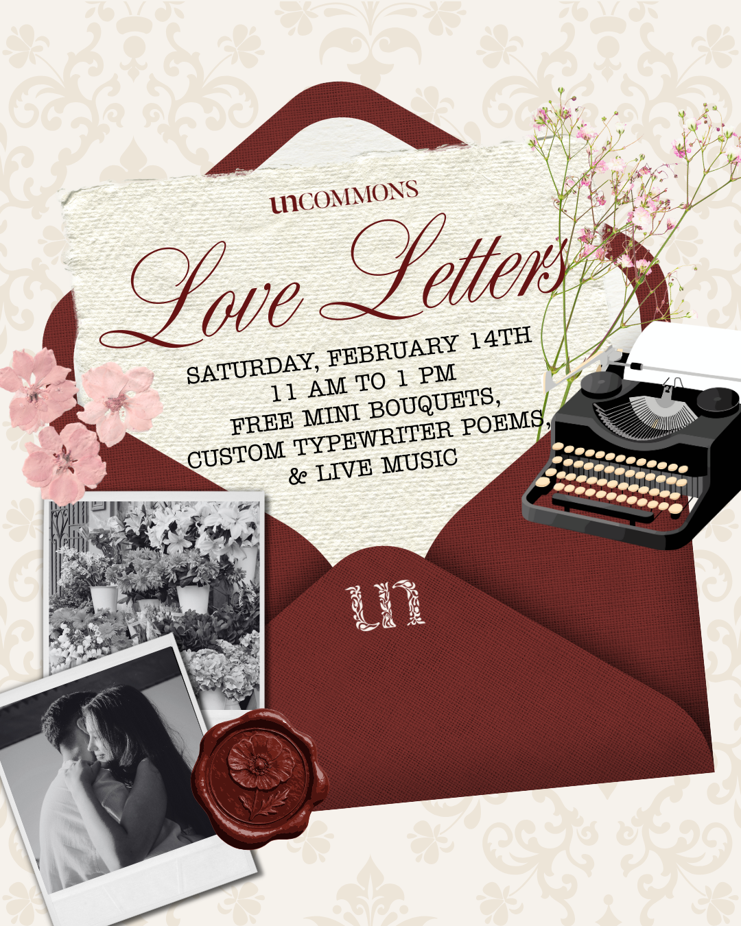 Find yourself at UnCommons on Valentine's Day, Saturday, February 14th to enjoy free mini bouquets of flowers* from Floral Lab, live music by B.Rose, and free custom typewriter poems from […]