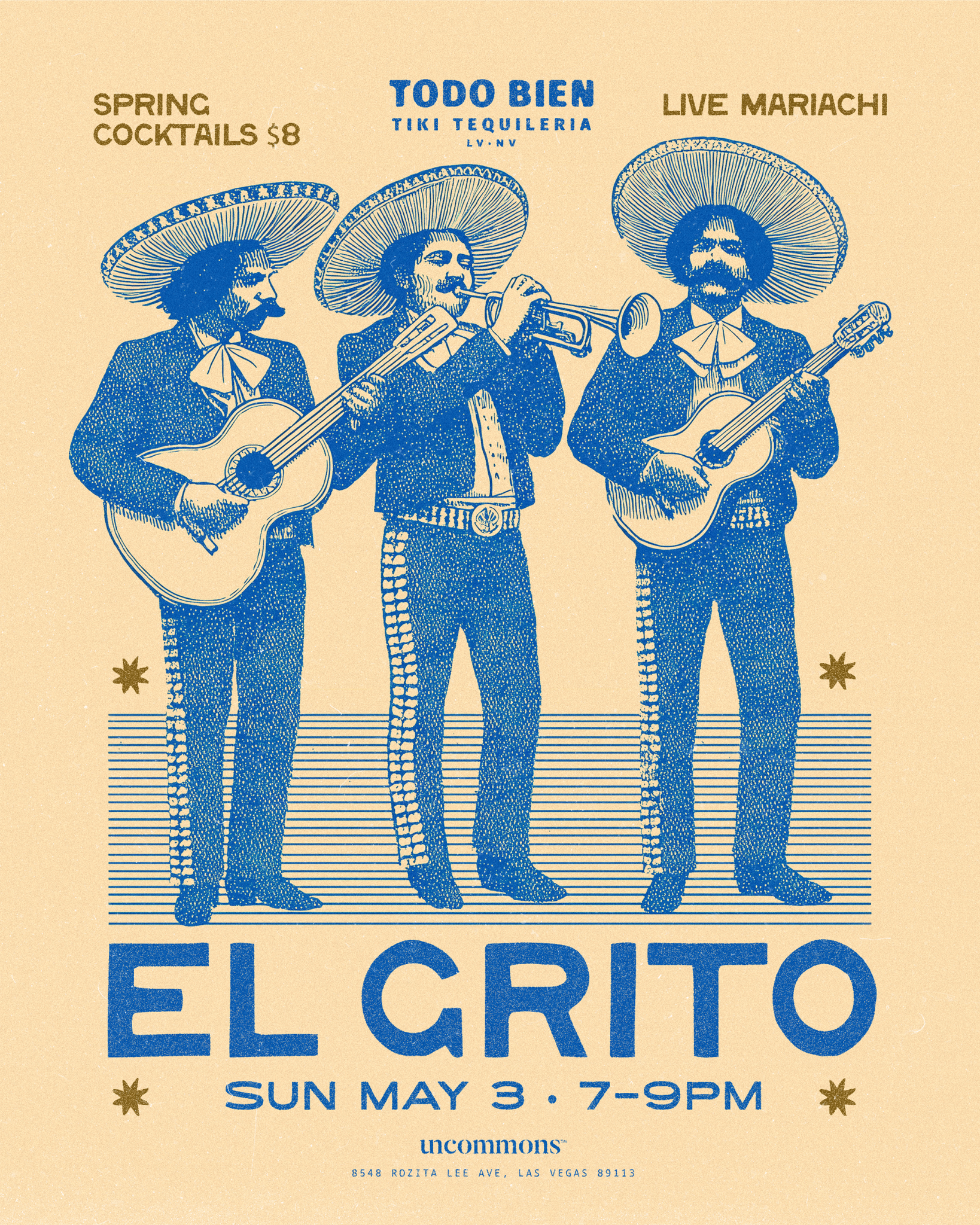 Kick off Cinco week With EL GRITO — Sunday, May 3rd 🎺 Live mariachis from 7–9PM, $8 spring cocktails, and a golden hour that lingers a little longer